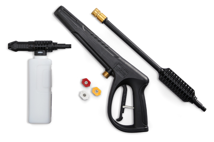 The SIMONIZ 2,050-PSI Pressure Washer is engineered to make your outdoor cleaning easier. This unit is equipped with 3 tips for precise spray patterns, and the patented foam blaster allows you the option of high-pressure soap application. The powerful 13-Amp universal Motor delivers ample power for quick cleaning of driveways, decks, windows and other areas around the house.